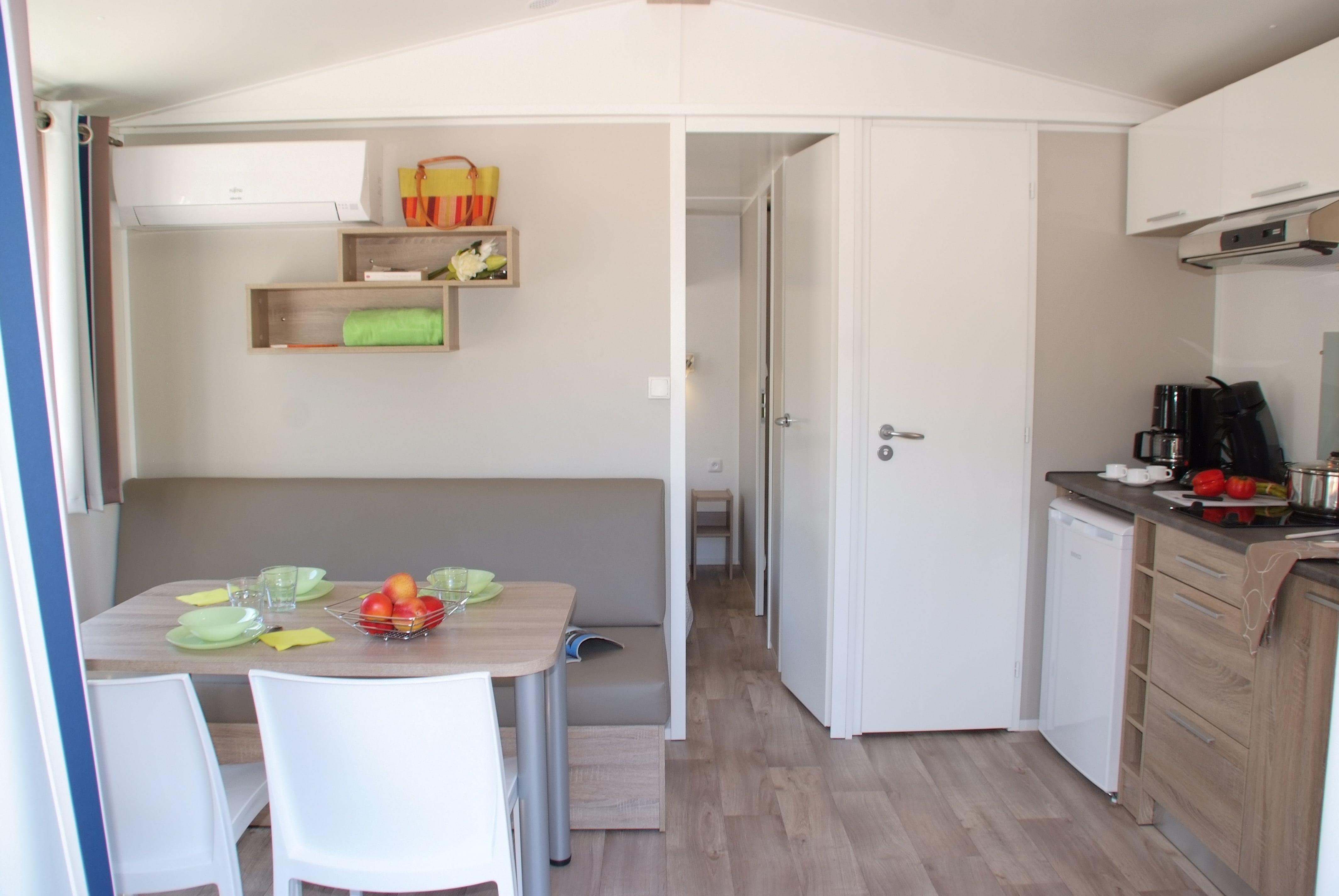 The quality thaht perfectly meets out current expectations! The Prestige range at Camping Sunelia l'Argentière offers a stay combining comfort and relaxation in the Gulf of Saint-Tropez, with modern amenities such as air conditioning, television, bed linen, Wi-Fi, a kettle, a toaster, and a hairdryer.