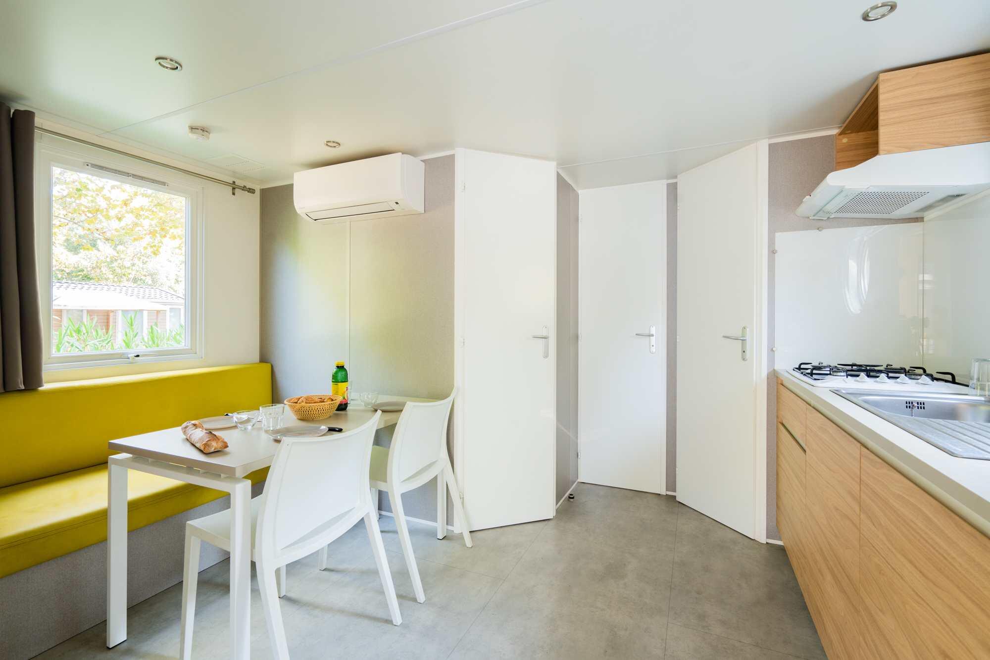 Enjoy the sunshine by stayong in a mobile home or bungalow at an affordable and friendly price from the Comfort Range, in the heart of the Gulf of Saint-Tropez. These rentals are all equipped with air conditioning and a television.
